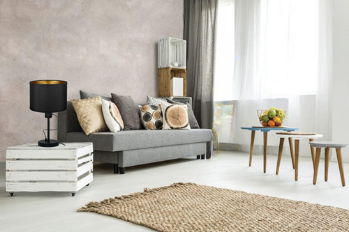 Lampa este un accesoriu elegant si modern pentru orice camera. Forma sa simpla consta intr-o rama neagra mata, care este completata de accentele aurii ale abajurului. Finisajul auriu al abajurului reflecta lumina si confera lampii un aspect luxos si atragator.